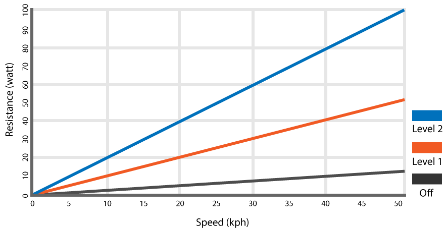 Level 1 adds 1 watt of resistance per Kilometer/hour. Level 2 adds 2 watts per kilometer/hour. 2 watts per kmh equates to a 1% grade on every road.